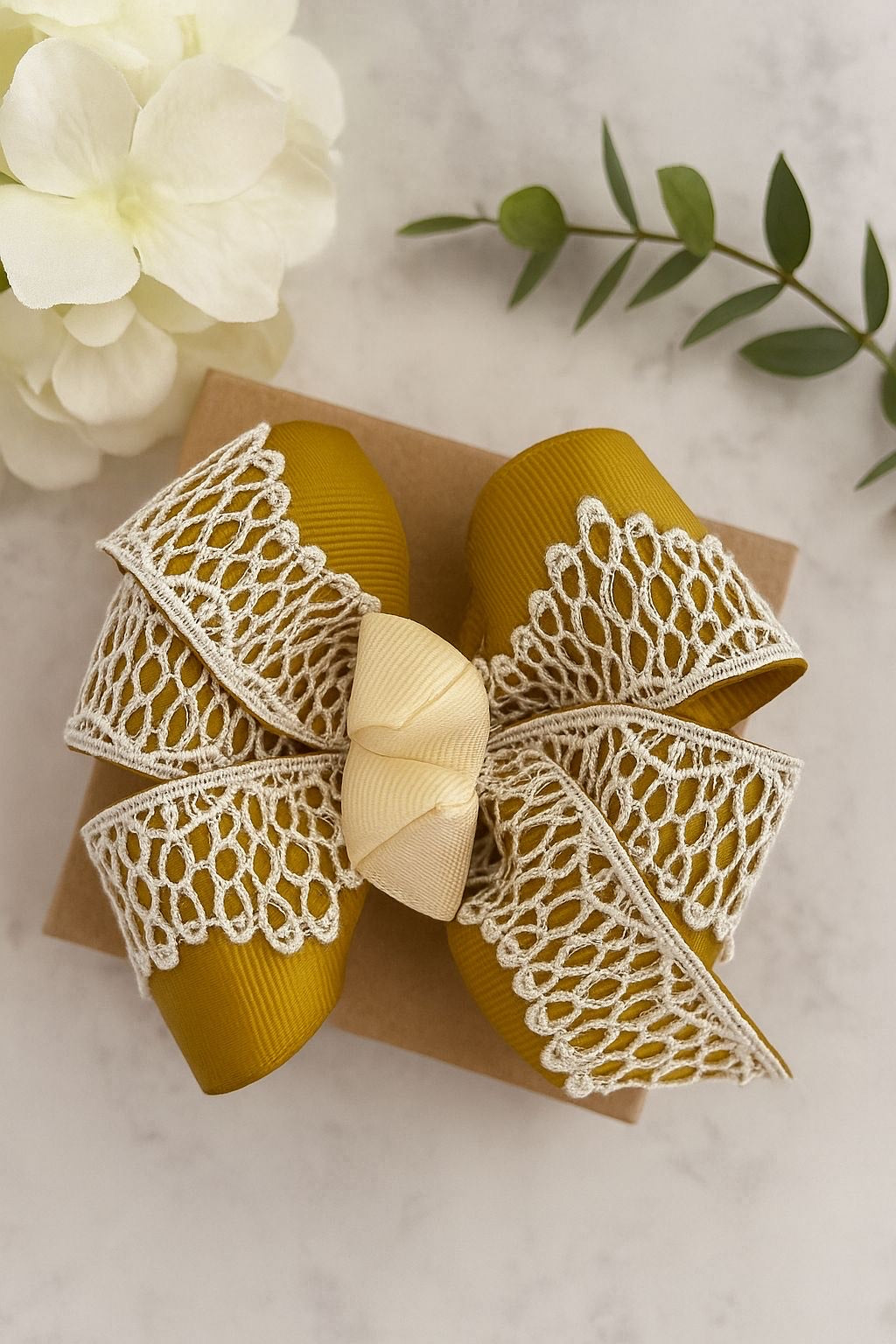 Lazo grande de gancho / pinza, con un tejido y encaje