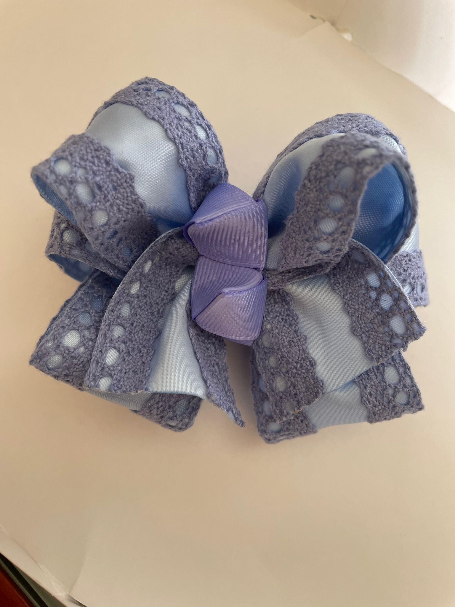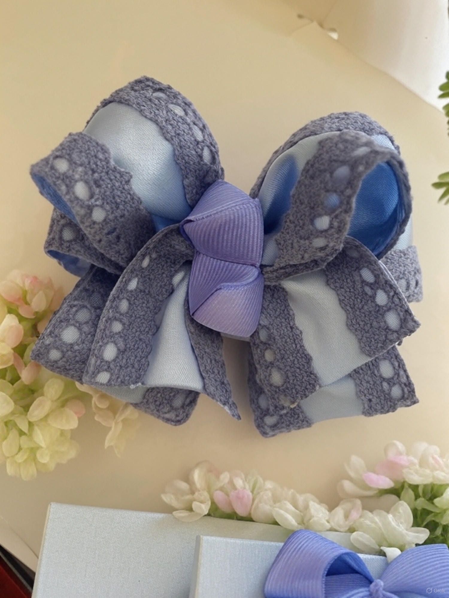 Un lazo grande y suave, con tonos purpuras, azules y turquesa